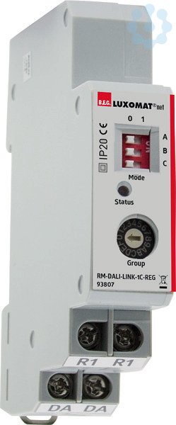 DALI-Relaismodul mit einem Schaltkanal für die Hutschienenmontage, Leistungsstarkes, potentialfreies Relais mit hoher Einschaltstrombelastbarkeit, Integrierter Applikations-Controller mit unterschiedlichen Betriebsarten, Betriebsmodi: Standard, Cut-off, HKL, Impuls, Alarm, DIP- und HEX-Schalter für schnelle Inbetriebnahme mit Grundfunktionen, Voller Funktionsumfang ist nur mit Zubehör aus B.E.G. LUXOMAT(R)net DALI-LINK Produktsortiment aktivierbar