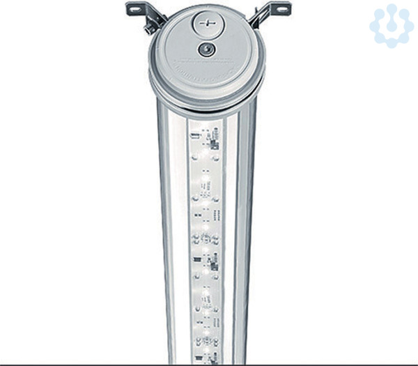 Rohrleuchte in Durchmesser 90 mm, Leuchten Lichtstrom: 8271 lm, Leuchten Lichtausbeute: 123 lm/W. Farbwiedergabe Ra > 80, Farbtemperatur 4000 K. Leuchten Leistung: 67 W, mit LED-Konverter, LED-Lebensdauer 58000 h bis zu einem Lichtstromrückgang auf 80 % des Anfangswertes. Farborttoleranz (initial MacAdam): 3. Geeignet für Decken- sowie waagrechte und senkrechte Wandmontage. Zugelassen für den Einsatz in Innen- und ungeschützten Außenbereichen. Umgebungstemperatur: -30°C bis +45°C. Gehäuse aus schlagzähem (IK08) Polycarbonat (PC), klar und Verschlusskappen aus Polyamid (PA). Dichtung aus alterungsbeständigem Silikon (SI). Geräteträger aus 2-fach lackiertem Stahlblech weiß. Flexible Montage mittels Edelstahl-Befestigungsschellen. Elektrischer Anschluß über Kabelverschraubung mit integriertem Druckausgleichselement und Steckanschlussklemme. IFS / BRC konform. Leuchte halogenfrei verdrahtet. IPX9K. SC1. Abmessungen: Durchmesser 90 x 1260 mm Gewicht: 3,6 kg.