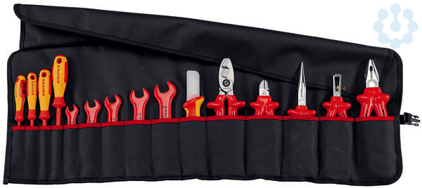 98 99 13 Werkzeug-Rolltasche Rolltasche aus strapazierfähigem Polyester-Gewebe. Mit praktischem, verstellbarem Schnellverschluss. Ausgestattet mit einem Sortiment isolierter KNIPEX-Werkzeuge für Arbeiten an elektrischen Anlagen. Abmessungen, geöffnet (L x H ): 830 x 310 mm. Lieferumfang: 1 x 11 07 160 KNIPEX Abisolierzange mit Öffnungsfeder, universal (Ø 5,0 mm / 10,0 mm²), 1 x 98 52 KNIPEX Kabelmesser, 1 x 95 17 200 KNIPEX Kabelschere mit Doppelschneide (Ø 20 mm / 70 mm²), 1 x 03 07 200 KNIPEX Kombizange, 1 x 98 20 25 KNIPEX Schraubendreher für Schlitzschrauben (2,5 mm), 1 x 98 20 40 KNIPEX Schraubendreher für Schlitzschrauben (4,0 mm), 1 x 98 20 55 KNIPEX Schraubendreher für Schlitzschrauben (5,5 mm), 1 x 98 20 65 KNIPEX Schraubendreher für Schlitzschrauben (6,5 mm), 1 x 98 00 10 KNIPEX Maulschlüssel (10 mm), 1 x 98 00 13 KNIPEX Maulschlüssel (13 mm), 1 x 98 00 14 KNIPEX Maulschlüssel (14 mm), 1 x 98 00 17 KNIPEX Maulschlüssel (17 mm), 1 x 98 00 19 KNIPEX Maulschlüssel (19 mm), 1 x 70 07 160 KNIPEX Seitensc