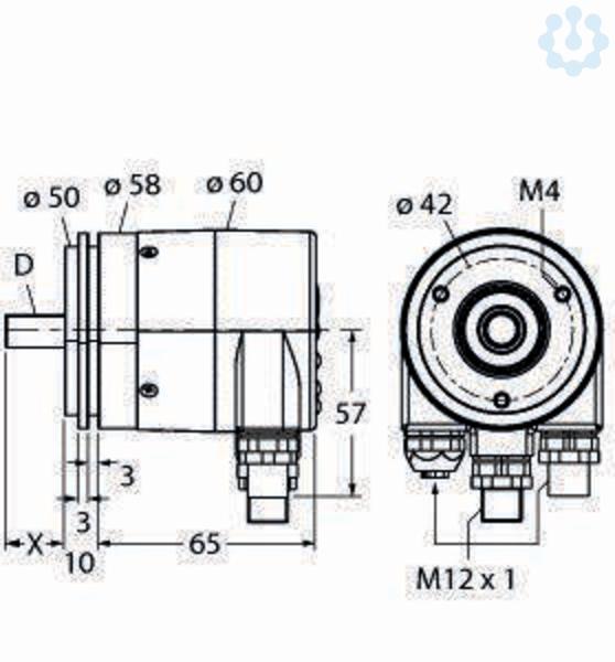Absoluter Drehgeber - Singleturn, Industrial-Line, Synchroflansch, Ø 58mm, Vollwelle, Ø 6mm x 10mm, Optisches Messprinzip, Wellenmaterial: rostfreier Stahl, Profibus, Abnehmbare Bushaube mit Steckeranschluss (3 x M12), Schutzart IP 67 wellenseitig, ?40 ... +80°C, max. 3000 U / min