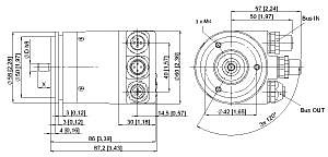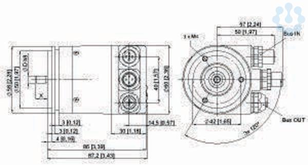 Absoluter Drehgeber - Multiturn, Industrial-Line, Synchroflansch, Ø 58mm, Vollwelle, Ø 10mm x 20mm, Optisches Messprinzip, Wellenmaterial: rostfreier Stahl, Profibus, Abnehmbare Bushaube mit Steckverbinder (3 x M12), Schutzart IP 67 wellenseitig, ?40 ... +80°C, max. 3000 U / min