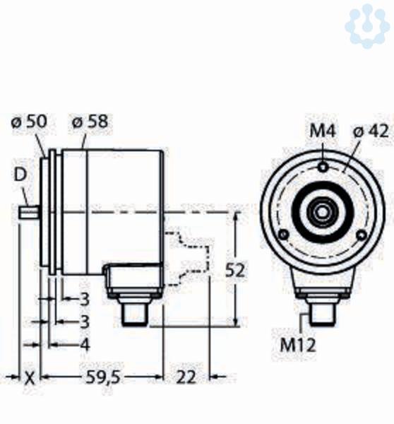 Absoluter Drehgeber - Multiturn, Industrial-Line, Synchroflansch, Ø 58mm, Vollwelle, Ø 6mm x 10mm, Optisches Messprinzip, Wellenmaterial: rostfreier Stahl, 10?30 V DC, SSI, gray, Steckeranschluss M12, 8?polig, Schutzart IP 67 wellenseitig, ?40 ... +70°C, max. 9000 U / min