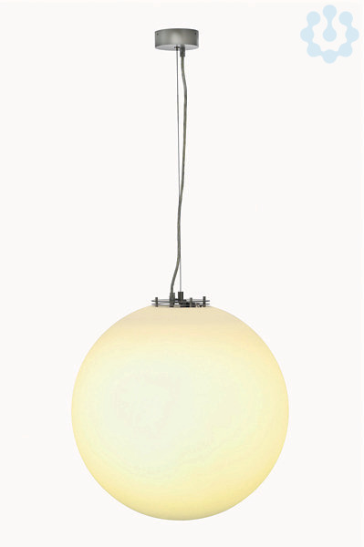 Die kugelförmige Hochvolt Pendelleuchte ROTOBALL 50 besteht aus einem Leuchtenschirm aus temperaturbeständigem Kunststoff, der optisch mit einer Halterung aus silbergrauem Stahl abgerundet wird. Der voluminöse Leuchtenschirm sorgt für homogene Ausleuchtungseigenschaften des zum Einsatz gebrachten Energiesparleuchtmittels mit handelsüblicher E27 Fassung. Eine passende Deckenrosette ist bereits im Lieferumfang enthalten. Die ROTOBALL 50 Pendelleuchte ist somit fertig für den direkten Anschluss an 230V Netzspannung.