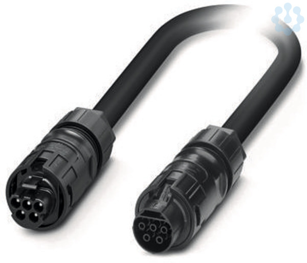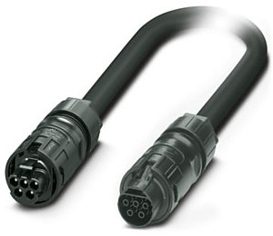 Rundsteckverbinder (kabelseitig), Artikelfamilie: PRC, Verbindungsleitung, Material Gehäuse: PPE, Farbe: schwarz, Polzahl: 5, Nennspannung: 690 V AC, Bemessungsstrom: 32 A, Anschlussart: Schraubanschluss, Kontaktart: Buchse / Stift