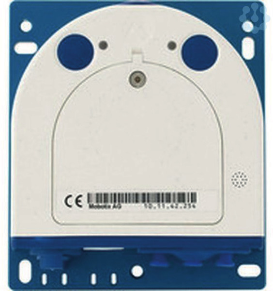 Schnittstellen: 2x Anschluss für MOBOTIX Sensormodul (Cam1/Cam2), Ethernet 10/100 (RJ45 und LSA), MxBus, USB, Audio (I/O). RS232 via MX Interface Box