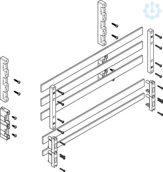 Sammelschienen-Bausätze mit 2 Sammelschienenträgern, . 500 mm Breite, Ausführung für tiefe Module mit Sammelschienenträger FST703N (L1 - L3), FST601N (N + PE). Höhe 450 mm. Bemessungsstrom (A) 440 (379). Kupfergröße L1 - 3 30 x 5 mm. Polzahl 5. VPE 1. Sammelschienen-Bausätze. 60 mm Schienenabstand, Einbaumaß 32/70 mm und N/PE. Sammelschienen-Bausatz in flacher (MF.. und MX..) oder tiefer (MT) Bauform zum Einbau in Modulbausätze und Montage auf das Traggerüst (NT/ST).. Vorbereitet für die Bestückung von ABN NH-Sicherungslasttrennschaltern NH1-3, NH00, NH000 sowie D02-Reitersicherungselemente und . NH00-Sicherungslastschaltleisten und Sammelschienenklemmen.. Inkl. Sammelschienenträger und Sammelschienenkonsolen mit oder . ohne vorkonfektionierten Kupferschienen.. Einbaumaß 70 mm. Geeignet für NH-Sicherungslasttrennschalter . Gr. 000/00/NH1-3 und NH00-Sicherungslastschaltleisten.