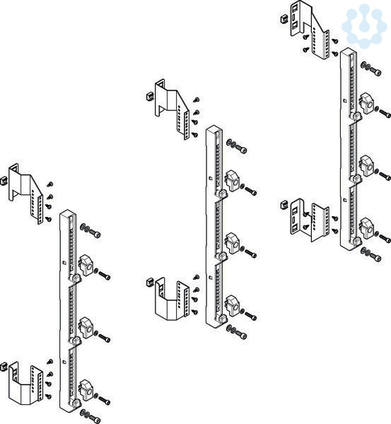Sammelschienen-Bausätze mit 3 Sammelschienenträgern, 1000 mm Breite, Ausführung für tiefe Module mit Sammelschienenträger FST903N und Konsole FSK903TN (N + PE siehe oben). Höhe 750 mm. Bemessungsstrom (A) 630 - 1200. Kupfergröße L1 - 3 ohne. Polzahl 3. VPE 1. Sammelschienen-Bausätze. 185 mm Schienenabstand für NH-Sicherungslastschaltleisten. Sammelschienen-Bausatz in flacher oder tiefer Bauform zum Einbau in Modulbausätze und Montage auf das Traggerüst (ST).. Vorbereitet für die Bestückung von ABN NH-Sicherungslastschaltleisten NH1-3, NH00 und Sammelschienenklemmen.. Inkl. Sammelschienenträger und Sammelschienenkonsolen mit oder ohne vorkonfektionierten Kupferschienen.. Ab 340 mm tiefen Gehäusen.. Verwendeter Sammelschienenträger bei 1000 A-Bausätzen (5-polig):. N: FST901N, PE: FST601N. Verwendeter Sammelschienenträger bei 630 A-Bausätzen (5-polig):. N: FST601N, PE: FST601N. Einbaumaß 150 mm. Geeignet für NH-Sicherungslastschaltleisten . der Größe NH00 und NH1-3.