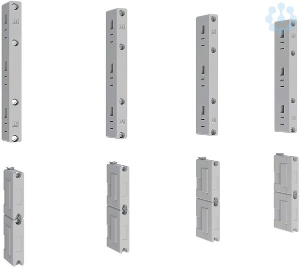 Sammelschienen-Bausätze mit 4 Sammelschienenträgern, . 1250 mm Breite, Ausführung für tiefe Module mit Sammelschienenträger FST703N (L1 - L3), FST601N (N + PE). Höhe 450 mm. Bemessungsstrom (A) 160 - 630. Kupfergröße L1 - 3 ohne. Polzahl 5. VPE 1. Sammelschienen-Bausätze. 60 mm Schienenabstand, Einbaumaß 32/70 mm und N/PE. Sammelschienen-Bausatz in flacher (MF.. und MX..) oder tiefer (MT) Bauform zum Einbau in Modulbausätze und Montage auf das Traggerüst (NT/ST).. Vorbereitet für die Bestückung von ABN NH-Sicherungslasttrennschaltern NH1-3, NH00, NH000 sowie D02-Reitersicherungselemente und . NH00-Sicherungslastschaltleisten und Sammelschienenklemmen.. Inkl. Sammelschienenträger und Sammelschienenkonsolen mit oder . ohne vorkonfektionierten Kupferschienen.. Einbaumaß 70 mm. Geeignet für NH-Sicherungslasttrennschalter . Gr. 000/00/NH1-3 und NH00-Sicherungslastschaltleisten.