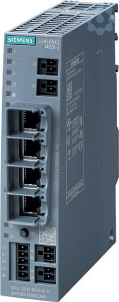 SCALANCE M826-2 SHDSL-Router. für die IP-Kommunikation über 2-Draht-und 4-Draht- Leitungen von Ethernet-basierten Automatisierungsgeräten. SHDSL-Topologie: Punkt-zu-Punkt, Bonding, Linie Bridge-Mode. Routing-Mode mit VPN, Firewall, NAT. 4-Port Switch. 1xDigitaleing., 1xDigitalausg. SCALANCEM826-2 SHDSLSHDSL-Topologie: Punkt-zu-Punkt, Bonding, Linie Bridge-Mode, Routing-Mode mit VPN, Firewall, Übertragungsrate: 10 Mbit/s, 100 Mbit/s, bei SHDSL-Übertragung max. 15,3 Mbit/s, 4-Port Switch (RJ45), NAT, 1xDigitaleingang, 1xDigitalausgang, Klemmleiste, SchutzartIP20.SHDSL-Modem für die IP-Kommunikation über 2-Draht-und 4-Draht-Leitungen von Ethernet-basierten Subnetzen und Automatisierungsgeräten.SHDSL-Modem für die kostengünstige und sichere Anbindung von Ethernet-basierten Subnetzen und Automatisierungsgeräten über bestehende Zwei- oder Mehrdrahtleitungen. Geeigneter Einsatz im industriellen und industrienahen Bereich.Hohe Sicherheitsstandards durch Firewall (stateful packet inspection) und VPN-Verbindungen (IP-S