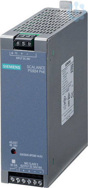 SCALANCE PS924 PoE Power-Supply für Power-over-Ethernet, Eingang: DC 24 V Ausgang: DC 54 V/1,6 A NEC Class 2 Stromversorgung SCALANCE PS9230 PoEKonzipiert für den Einsatz im Schaltschrank (Schutzart IP20) zusammen mit Switches, in anspruchsvollen Umgebungen bei einem Betriebstemperaturbereich von -40 °C bis +70 °C.Hohe Leistung (bis zu 120 Watt) an den Switch-Ports für angebundene Power-over-Ethernet (PoE)-Teilnehmer möglich. Typische Teilnehmer, sogenannte Powered Devices (PD), sind z. B. WLAN Access Points, RFID Readers, Kameras, IP-Telefone etc. Vorteil von PoE: Reduzierter Verkabelungsaufwand durch die Nutzung der Datenleitung sowohl für die Übertragung von Daten als auch für die Versorgungsspannung des angeschlossenen Teilnehmers. Platzsparend durch kompakte Bauform und Montage auf der Hutschiene. Einfache Installation dank Klassifizierung als Stromquelle mit begrenzter Leistung (LPS / NEC Class 2). Robustes, industriegerechtes Gehäuse aus Metall für den Einsatz in klimatisch anspruchsvollen Umgebungen.