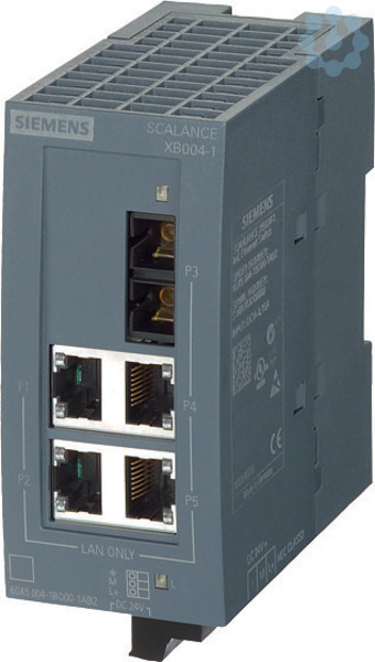 zum Aufbau von kleinen Stern- und Linienstrukturen. LED-Diagnose, IP20, AC/DC 24V Spannungsversorgung, mit 4x 10/100 Mbit/s Twisted Pair Ports mit RJ45-Buchsen. 1 x 100 Mbit/s Multimode Glas LWL-Port mit SC-Buchse. Handbuch als Download verfügbar SCALANCE XB004-1 Unmanaged Kompakt Switch, 4x 10/100 Mbit/s RJ45, 1x 100 Mbit/s Multimode SC für kleine IE-NetzwerkeEinsatz im Schaltschrank/Schaltkasten für den kostengünstigen Aufbau kleiner IE-Netzwerke.Kostengünstige Einstiegslösung und platzsparender Schaltschrankeinbau durch kleine, kompakte Bauform, einsetzbar in industrieller Umgebung. Schnelle Inbetriebnahme ohne Konfiguration sowie einfache Vor-Ort-Diagnose über LEDs. Unkomplizierter Einsatz ungekreuzter Verbindungsleitungen durch integrierte Autocrossover-Funktion. Möglichkeit der einfachen Netzerweiterung und kostengünstige Anbindung besonders weit entfernter Teilnehmer.Unmanaged Kompakt Switch, AC/DC 24 V, 4x 10/100 Mbit/s Twisted