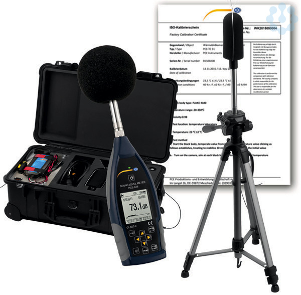 Weiterhin kann das Schallpegelmessgerät Messungen mit den Zeitbewertungen Fast, Slow, Impuls und Peak darstellen. Der Messbereich von dem Schallpegelmessgerät erstreckt sich von 25 ... 136 dbA bei einer Frequenz von 20 Hz ... 12,5 kHz. Dem Schallpegelmessgerät können 3 verschiedene Messprofile hinterlegt werden. Hier kann der Anwender entscheiden welche Parameter das Schallpegelmessgerät erfassen soll. Es kann hier zum Beispiel zwischen Laeq, LcPeak, LaFmax, LaFMin usw. gewählt werden.