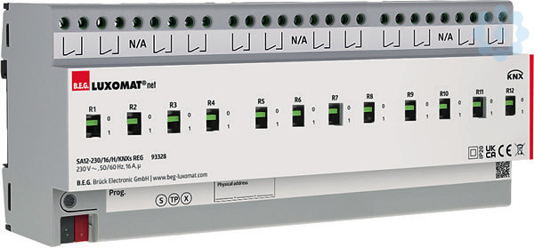 Schaltaktor zum Schalten von Verbrauchern, KNX Secure fähig, Industriequalität, KNX-Reiheneinbaugerät zur Montage auf einer Hutschiene (TH 35 nach EN 60715) zum Einbau in den Verteiler, 12 unabhängige, potentialfreie Schließerkontakte, Schaltkontakte sind optimiert für kapazitive Lasten, Handschalter ermöglichen das manuelle Schalten auch ohne Busspannung, Versorgungsspannung über KNX-Bus, Anschluss der Ausgänge über Schraubklemmen