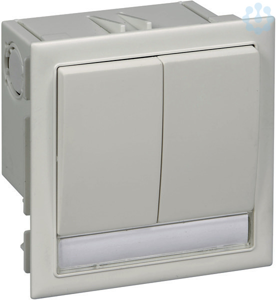 Schalter 2-fach, inkl. Einbaudose Wippe RAL9016 weiß TypCYB-PB-WS 9016. Schalter-Anschluss-Kit mit Dose, Schaltereinsatz, Adapter, zwei Zugentlastungsvorrichtungen, Abdeckung mit zwei Wippen und Etikett mit Etikettenfenster. Einschaltposition unten oder oben. 250 V, 16 A. Material PC/ABS.