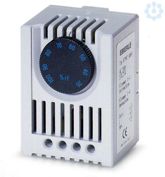 Der Schaltschrank-Hygrostat, für DIN-Schienenmontage, eignet sich für die Regelung der Luftfeuchtigkeit (Be- und Entfeuchten) in Schalt-, Steueranlagen, Verteilersysteme usw.. Der Regler hat im Einstellknopf eine Bereichseinengung integriert. Der gewünschte Bereich oder eine feste relative Luftfeuchte kann festgelegt werden. Anschluss von vorne, ohne Abnahme des Gehäusedeckels.