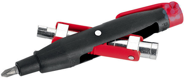 Subkey ?Elektro?, Patentiert, durch einen doppelten Drehmechanismus können vier verschiedene Schaltschrank-Schlüssel in Position gebracht werden. Ein am Stift angebrachter 5 mm Vierkant eignet sich besonders zum Entlüften von Heizungsventilen. Durch eine universelle 1/4?-Bitaufnahme können alle handelsüblichen Bits eingesetzt werden. Für Schließungen in Elektrotechnik, Gas- und Wasserversorgung, Heizung, Klima- und Sanitärbereich und viele mehr. Material: Zinkdruckguss/Kunststoff (glasfaserverstärkt), Gewicht: 103 g, Maße: 142 x 97 x 23 mm