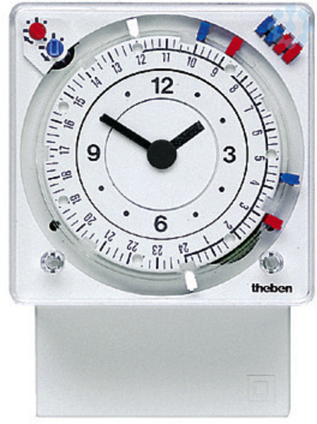 Zeitschaltuhr mit Stecksockel, Frontrahmen 72x72 mm, Spannklammer, Gangreserve, 24 Std. + 7 Tage-Progr., kürzeste Schaltzeit 30 Min./12 Std., Schaltungsvorwahl und Dauerschalter