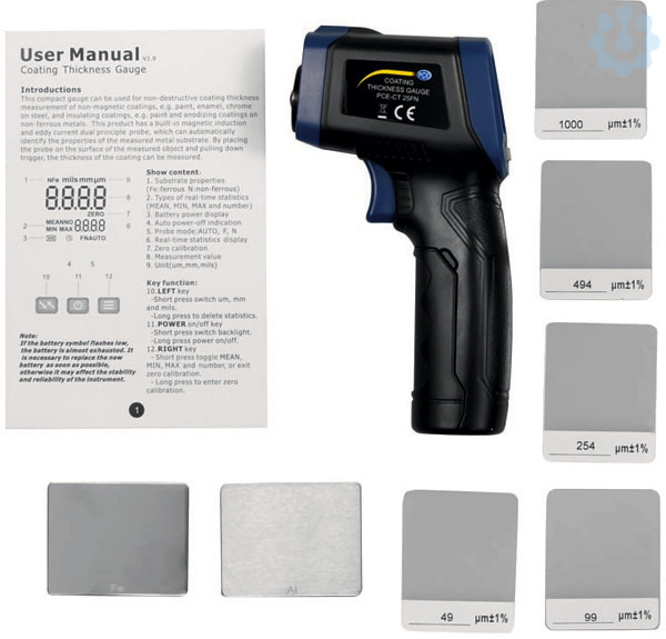 Die angezeigten Messwerte können bei dem Schichtdickenmessgerät in µm, mm und in mils ausgegeben werden. Neben dem Messen der Schichtdicke kann das Schichtdickenmessgerät aus einer Reihe an verschieden Messungen den kleinsten, den größten und auch den Mittelwert bestimmen. Auch verfügt das Schichtdickenmessgerät über eine automatische Abschaltfunktion.