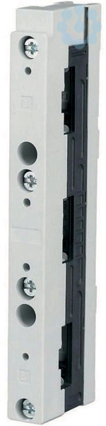 IEC-Sammelschienenträger, 60-mm-System, Bemessungsbetriebsstrom Ie=630A, Pole=3, verwendbar für 12x5/10, 15x5/10, 20x5/10, 25x5/10 und 30x5/10, mit Rastschieber zum Anpassen an jeweilige Schienengröße, mit innen liegenden Anschraublöchern, Temperaturbeständig bis 120°C, Kriechstromfestigkeit CTI 200, selbstverlöschend nach UL 94, RAL 7035, Thermoplast, silikonfrei, chlorfrei, halogenfrei, Schienenträgerabstand entsprechend Kurzschlussfestigkeitsdiagram,