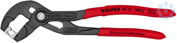 der Schellen in jeder Position. Gute Hebelübersetzung: die Schellen können einfach, ohne hohen Kraftaufwand sicher und leicht geöffnet und wieder geschlossen werden. Zum komfortablen Arbeiten z. B. an Kraftstoffschläuchen, Unterdruckleitungen und Ansaugstutzen. Zusatzfunktion: Schläuche schonend lösen durch gezahntes Greifmaul. Schlanker Kopf. Geringe Kopfbreite, drehbare Greifeinsätze: ein ideales Werkzeug gerade unter beengten Verhältnissen. Chrom-Vanadin-Elektrostahl, geschmiedet, ölgehärtet