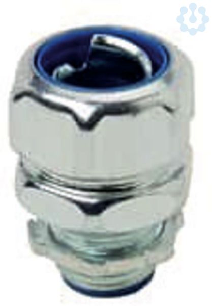Gerade Metall-Verschraubung, fuer fluessigkeitsdichte Metall-Schutzschlaeuche, aus galvanisiertem Stahlguss mit verchromter Oberflaeche, Innenhuelse aus Polyamid, Nenngroeße 1 1/2 Zoll bzw 50 mm, Gewindeanschluss NPT 1 1/2 Zoll, Schutzklasse