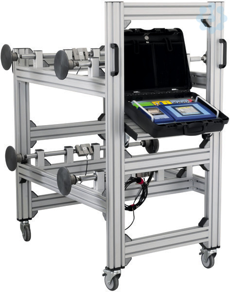 Jeder dieser 4 Kraftsensoren kann eine Maximalkraft von bis zu 3t aufzeichnen. Die Kraft wird im Farbdisplay des 4 Punkt Messwagens mit einer Auflösung von 1 kg dargestellt. Dabei wir die Kraft jedes einzelnen Sensors, sowie die Summen mehrerer Sensoren a