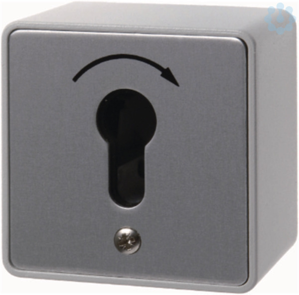 Schlüsseltaster Ap für Profil-Halbzylinder Druckguss IP44. Taster/Schließer mit Aufdruck, mit 0-Stellung, Leitungseinführung Ø 11 mm hinten, Leitungseinführung Ø 22,5 mm (PG 16) unten, Deckelverriegelung, Schraubklemmen.