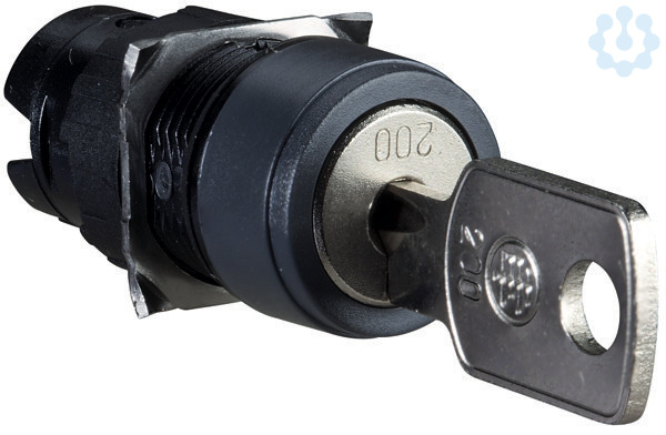 Frontelement für Schlüsselschalter Harmony ZB6. Blende Kunststoff. 2 Stellungen, Schlüsselabzug Mitte. Abmessung (BxHxT) 18x18x55 mm, Montagedurchmesser 16 mm. Schloßtyp Ronis 200, Kopfform rund. Mit hoher Vibrationsfestigkeut und chemischer Beständigkeit, Umgebungstemperatur -40 bis +70 Grad C. Das Kunststoffprogramm mit 16mm Einbaumaß verbindet einfache Montage mit großer Flexibilität bei kleinstem Platzbedarf. Zertifizierungen nach GOST, UL, CSA, CCC. Produktstandards gem. JIS C 852, CSA C22.2 No 14, JIS C 4520, EN/IEC 60947-5-1, EN/IEC 60947-5-5, UL 508, EN/IEC 60947-1.