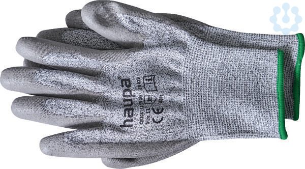 PU-Schnittschutzhandschuh Level 5PU-Schnittschutzhandschuh Level 5, zum Schutz vor mechanischen Risiken gemäß EN420 Kat. 2, EN388 Level 4.5.4.4., Handinnenfläche und Fingerkuppen mit PU Beschichtung, HPPE-Faser, grau / grau, Rundstrick - nahtlos, Strickbund, angenehmer Tragekomfort, atmungsaktiv, sicherer Griff mit exzellentem Tastgefühl, hohe Abriebfestigkeit, hervorragende Passform