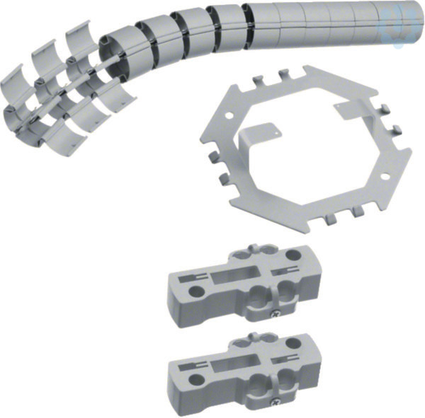 Rundkette starr/flexibel mit Fußteil/Halter d=70mm ausgezogene L=0,8m lichtgrau. Runde Leitungsführungskette aus nicht leitendem Kunststoff, mit Zubehörteilen für die Leitungsführung vom Boden zur Schreibtischunterseite. 2 Kammern für die Trennung von Energie- und Datenleitungen. Jede Kammer einzeln öffenbar und Kabel über die gesamte Länge einlegbar. Einhaltung der erforderlichen LWL-Mindestbiegeradien gewährleistet. Kettenglieder sowohl flexibel als auch starr verrastbar. Gesamtlänge 810 mm. Kette beliebig kürz- oder erweiterbar. Montageadapter zur Befestigung an der Tischplatte und Fußteil aus Stahlblech für den Bodenanschluss im Lieferumfang enthalten. Kaschierungen für Übergänge zur Leitungsführung auf dem Boden oder zur Unterflurinstallation sowie Wandhalter, als Zubehör erhältlich.