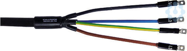 Warmschrumpf-Endverschluss universell verwendbar zum Anschluss von Kunststoffkabeln an elektrische Betriebsmittel, für Kabel mit Isolierungen aus PE, VPE und Kabelmäntel aus PVC und PE. Universell verwendbar zum Anschluss von Kunststoffkabeln an elektrische Betriebsmittel, für Kabel mit Isolierungen aus PE, VPE und Kabelmäntel aus PVC und PE. Geeignet für Presskabelschuhe auf Aluminium- und Kupferkabeln. Anwendungsgebiete: Innenraum. Eigenschaften: Kompakte Abmessungen, großer Leitungs- und Kabelquerschnittsbereich, beständig gegen chemische Einflüsse, stabilisiert gegen UV-Strahlen, frei von lackbenetzungsstörenden Substanzen, halogenfrei, hohe elektrische Isolationswerte, hohe mechanische Festigkeit. Lieferumfang: Aufteilkappe, Dichtungsschläuche, Reinigungstuch, Schmirgelleinen, Montageanleitung.