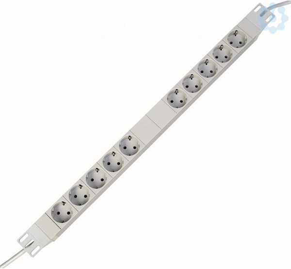 PROFIversal 5+5 fach Steckdosenleiste mit zwei getrennten Stromkreisen, Schutzkontakt-Steckdosen Ausführung, CEE7/III, 45° gedreht, 2x Zuleitung H05VV-F 3G1,5mm², mit Schutzkontakt-Winkelstecker, 16A, 250V, 50Hz, Länge 675mm, Breite 44mm, Einbautiefe 44,45mm, Überspannungsmodul Type 3 (DIN EN 61643-11), Entstörfiler-Modul 250V, 50/60Hz, Farbe aluminium.