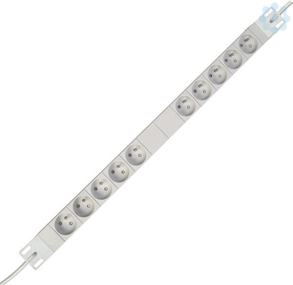 PROFIversal 5+5 fach Steckdosenleiste mit zwei getrennten Stromkreisen, Mittenschutzkontakt-Steckdosen Ausführung (MSK), CEE7/V, 45° gedreht, 2x Zuleitung H05VV-F 3G1,5mm², mit Schutzkontakt-Winkelstecker, 16A, 250V, 50Hz, Länge 675mm, Breite 44mm, Einbautiefe 44,45mm, Überspannungsmodul Type 3 (DIN EN 61643-11), Entstörfiler-Modul 250V, 50/60Hz, Farbe aluminium.