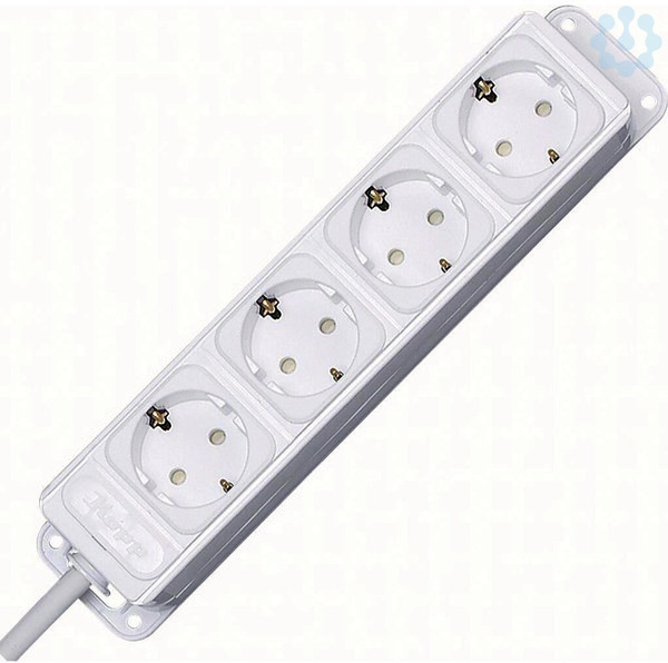 UNOversal 4-fach, mit erhöhtem Berührungsschutz, mit 90°gedrehten Töpfen, Topfabstand 52mm, 1,4m Zuleitung H05VV-F3G1,5mm², Steckdosenleisten-Länge 24,5mm, anschraubbar, Befestigungsabstand 197,5mm, 16A, 250V~, Farbe: arktisweiß