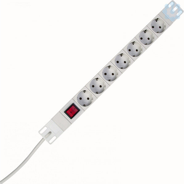 PROFIversal 7-fach, mit 2-poligem beleuchteten Schalter, mit45°gedrehten Töpfen, 44,45mm Topfabstand, universelle Befestigungsmöglichkeit, wiederanschließbar, Zuleitung H05VV-F3G1,5mm², 2m, mit Schutzkontakt- Winkelstecker, 250VAC, 16A, Länge 482,6mm, VDE, CEE7/III,Farbe: aluminium