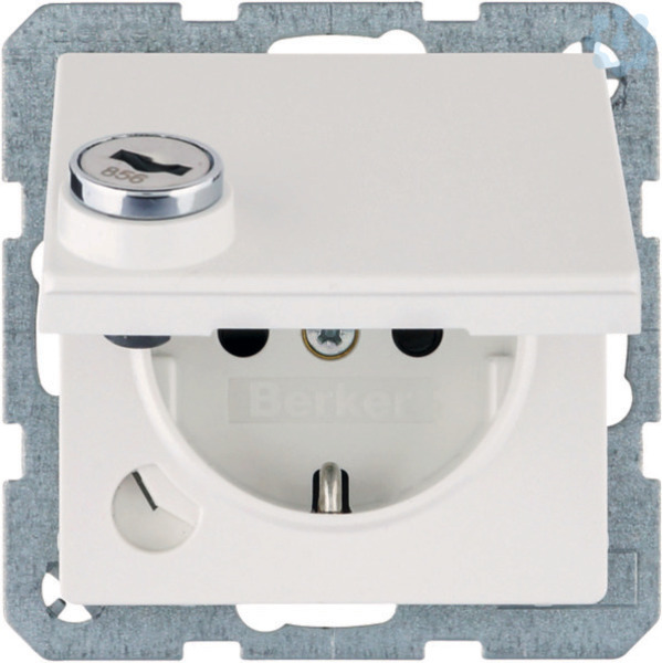 SCHUKO Steckdose m. Steckklemme,Klappd.,Schloss, Q.1,polarweiß matt
