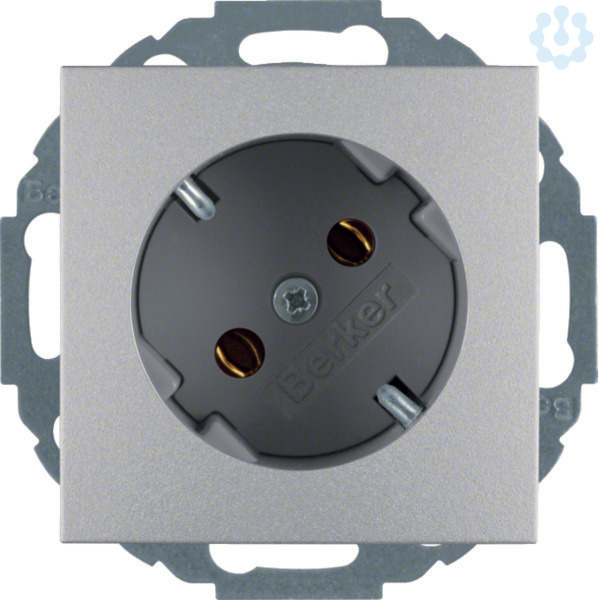 Steckdose SCHUKO 45° B.7 alu, matt. Steckdose SCHUKO® mit erhöhtem Berührungsschutz, mit Steckklemmen nach VDE 0620 als Verbindungsklemmen ausgeführt und genehmigt, mit einteiligem Erdungsbügel. Unterputz-Installation, Flächen-/Designprogramm. Material: Kunststoff, Thermoplast, bruchsicher, halogenfrei.