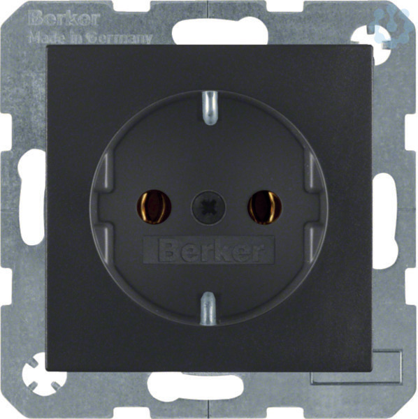 Steckdose SCHUKO B.3/B.7 anthrazit, matt. Steckdose SCHUKO® mit Steckklemmen nach VDE 0620 als Verbindungsklemmen ausgeführt und genehmigt, mit einteiligem Erdungsbügel. Unterputz-Installation, Flächen-/Designprogramm. Material: Kunststoff, Thermoplast, bruchsicher, halogenfrei.