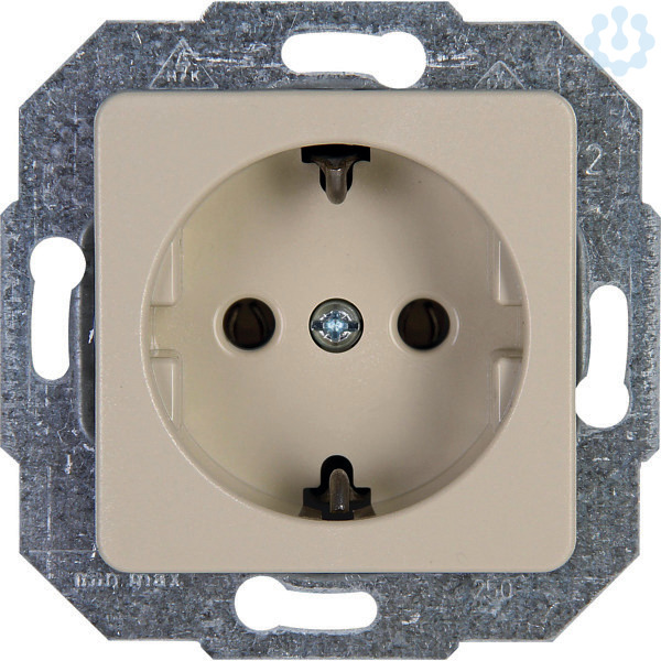Schutzkontakt-Steckdose im Design EUROPA und der Farbe cremeweiß. Der Nennstrom beträgt 16A und die Nennspannung250V~, Schutzart IP20