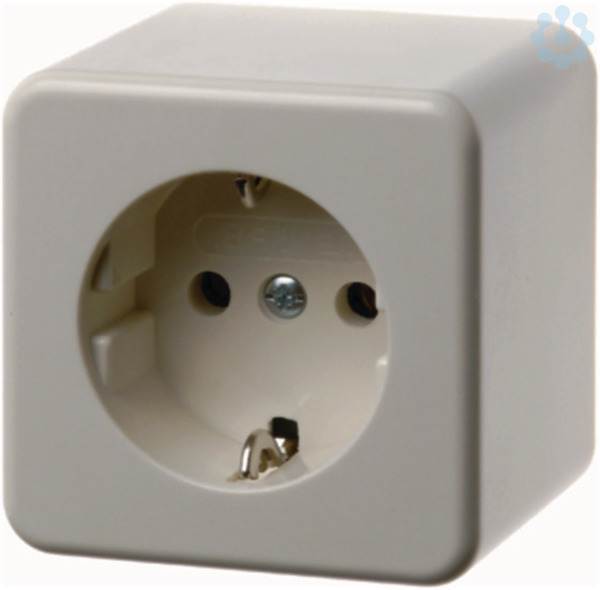 Steckdose SCHUKO Aufputz weiß, glänzend. Steckdose mit Hohlboden, Steckklemmen, Leitungs- und Kanaleinführung, Öffnung für Einführung oben und unten (ausbrechbar).