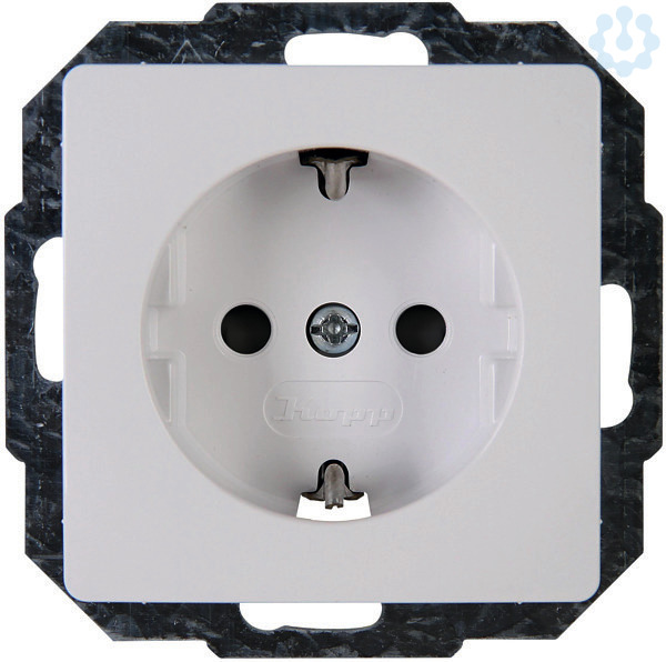 Schutzkontakt-Steckdose mit erhöhtem Berührungsschutz im Design PARIS und der Farbe arktisweiß. Der Nennstrom beträgt 16A und die Nennspannung 250V~, Schutzart IP20