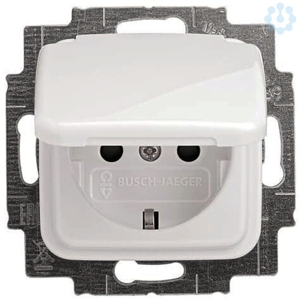 Mit erhöhtem Berührungsschutz. Mit Steckanschluss. 2-polig (2 P + E) Klappdeckel arretiert in geöffnetem Zustand. SCHUKO® Steckdose Safety+ mit Shutter (erhöhter Berührungsschutz gemäß VDE 0620)