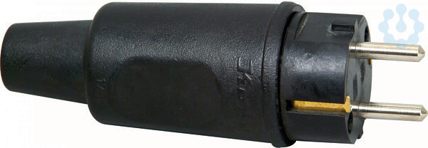 Vollgummi-Schutzkontakt-Stecker, IP44, schwere Ausführung mit Knickschutztülle, bruchfest, schlagfest, formbeständig auch bei härtestem Einsatz, Einsatz: Gummi, Kappe: Gummi, für Kabelquerschnitt bis 3x2,5mm², 16A, 250V~, schwarz