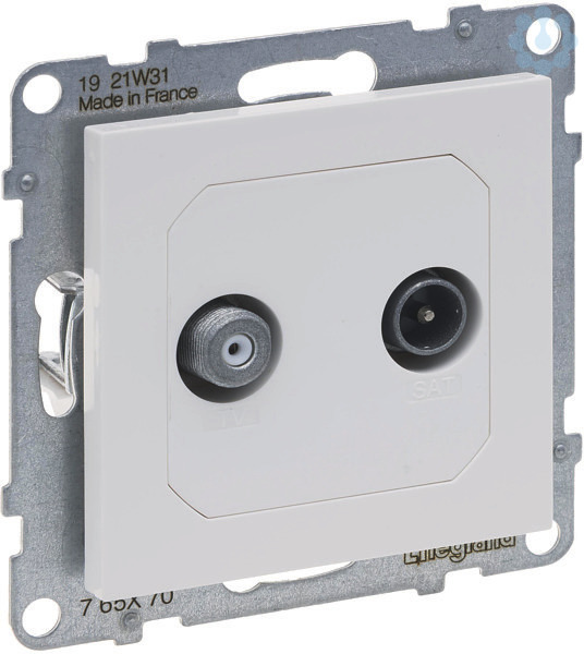 Seano TV-SAT-Anschlussdose für 2 Kabel mit Anschlussdämpfung 1,5 dB. TV: 5 ? 68/120 ? 862 MHz, SAT: 950 ? 2400 MHz. TV-Buchse ?männlich? (Ø 9.5 mm), SAT-Buchse ?F-Typ?. Schnellanschlusstechnik mit 1/4 - Drehung. Der Einsatz ist für Spreizkrallen- und Schraubbefestigung geeignet und wird mit transparenter Staubschutzabdeckung geliefert. Auslieferung inkl. Abdeckung in der Farbausführung Schwarz lackiert. Zum Komplettieren mit Abdeckrahmen der Serien SEANO, SEANO+ und SEANO Natura.