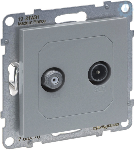 Seano TV-SAT-Anschlussdose für 2 Kabel mit Anschlussdämpfung 1,5 dB. TV: 5 ? 68/120 ? 862 MHz, SAT: 950 ? 2400 MHz. TV-Buchse ?männlich? (Ø 9.5 mm), SAT-Buchse ?F-Typ?. Schnellanschlusstechnik mit 1/4 - Drehung. Der Einsatz ist für Spreizkrallen- und Schraubbefestigung geeignet und wird mit transparenter Staubschutzabdeckung geliefert. Auslieferung inkl. Abdeckung in der Farbausführung Aluminium lackiert. Zum Komplettieren mit Abdeckrahmen der Serien SEANO, SEANO+ und SEANO Natura.