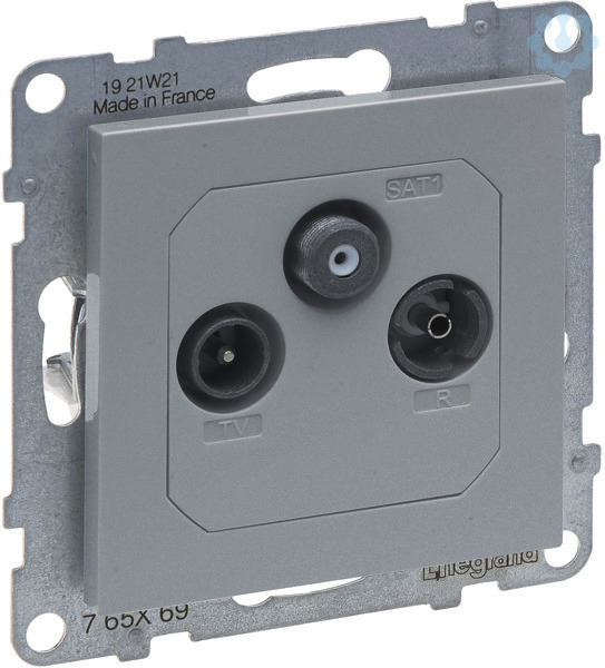Seano Antennen-Enddose Anschlussdämpfung 10 dB zum Abschluss in einer IN/OUTVerkabelung. TV-Buchse ?männlich? (Ø 9.5 mm), R-Buchse ?weiblich? (Ø 9.5 mm), SAT-Buchse ?F-Typ?. TV: 5 ? 68 und 120 ? 862 MHz, R: 87,5 ? 108 MHz, SAT: 950 ? 2400 MHz. Der Einsatz ist für Spreizkrallen- und Schraubbefestigung geeignet und wird mit transparenter Staubschutzabdeckung geliefert. Auslieferung inkl. Abdeckung in der Farbausführung Aluminium lackiert. Zum Komplettieren mit Abdeckrahmen der Serien SEANO, SEANO+ und SEANO Natura.