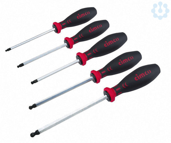 Nicht isolierte Kugelkopf Sechskant Stiftschlüssel mit blanker, mattverchromter Klinge. Sortiment 5 teilig. SW 3 x 100mm 11 7223, SW 4 x 100mm 11 7224, SW 5 x 100mm 11 7225, SW 6 x 125mm 11 7226, SW 8 x 150 mm 11 7228 aus hochlegiertem Chrom-Vanadium-Stahl, hochglanzverchromt, mit schwarzen Spitzen, Griffe aus schlagfestem, transparentem Kunststoff