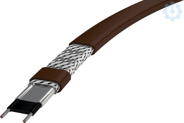 Selbstregelndes Heizband für Anwendungen zum Halten der Prozesstemperaturen bis zu 110 Grad Celsius, die nicht der Dampfspülung ausgesetzt werden bestehend aus zwei parallelen, vernickelter Kupferleitern, 1,4 mm2, dem dazwischen liegenden, molekularvernetzten, selbstregelnden Heizelement, einer Fluorpolymer-Isolation, einem Schutzgeflecht aus verzinnter Kupferlitze (Widerstand max. 0,010 Ohm/m gemäß VDE 0254) und einem äußerem schwarzen Schutzmantel aus Fluorpolymer. Bei Sicherungsautomaten mit C-Charakteristik gemäß EN 60898 beträgt die maximale Heizkreislänge bei 16 A Absicherung 75 m bei einer Einschalttemperatur von -20 Grad Celsius. Leistung 51 W/m.