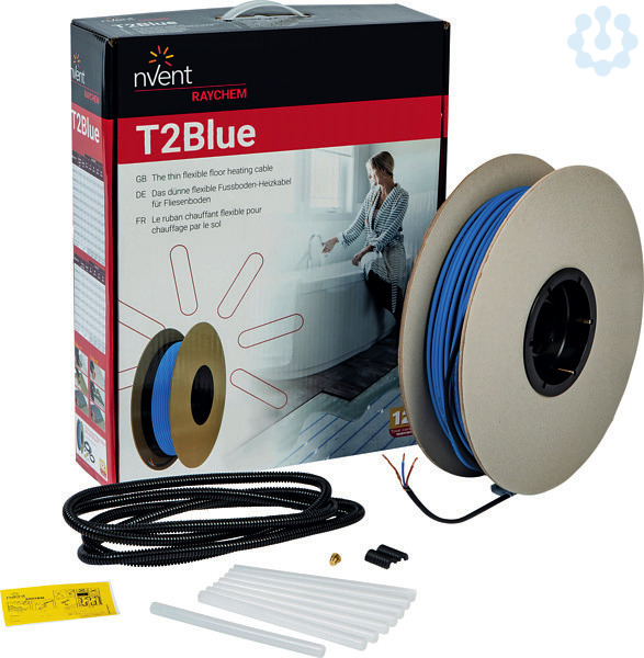 nVent RAYCHEM T2Blue ist ein elektrisches Fußbodenheizungskabel für Neubauprojekte, bei denen das Kabel direkt in 10?15 mm Estrich (T2Blue-10) oder in 30?50 mm Estrich (T2Blue-20) verlegt wird. Das Kabel existiert in 2 Leistungsvarianten von 10 W/m und 20W/m und ist in vorkonfektionierten Längen (11?200 m) erhältlich. Das Sortiment ist in kostengünstigen Paketen erhältlich, inklusive des losen Kabels, oder in installationsfreundlichen Sets, inklusive des Kabels auf einer Trommel, eines SENZ-Touchscreen-Thermostats und des gesamten Montagezubehörs.