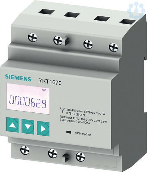 SENTRON, Messgerät, 7KT PAC1600, LCD, L-L: 400 V, L-N: 230 V, 80 A, Hutschienengerät, 3-phasig, M-bus, Schein- / Wirk- / Blindenergie, eigenversorgt, Schraubanschluss